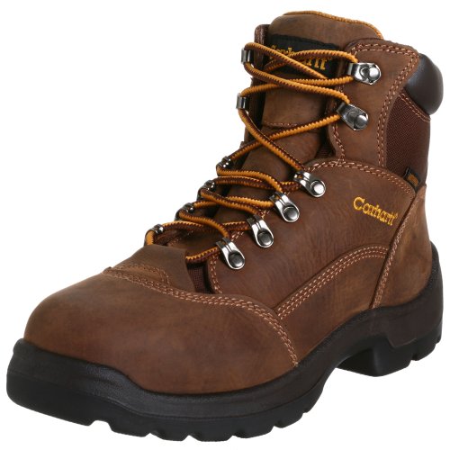 Men's Carhartt 6" Steel Toe Electrical Hazard Work Boots. Insulated and waterproof to make your coldest, wettest, hardest work easier! Full-grain waterproof leather uppers. Breathable Cambrelle lining. 400-grams of Thinsulate Insulation. Cold weather? So what. A little rain? Whatever. When it comes to the job, you don't make any excuses... so, naturally, you need proper footwear to keep up. Look no further. All the necessities you need for getting comfortably through your workday are here. Treat your feet to a worksite legend: ASTM steel toe and electrical hazard protection; Direct attach construction for a more comfortable, flexible fit; Removable polyurethane insole for shock absorbing comfort; Slip, oil, chemical and abrasion-resistant rubber / polyurethane auger outsole; Supportive, non-metallic shank; 6" h., 34 ozs. Brown. State Size. Order Today! Men's Carhartt 6" Steel Toe Electrical Hazard Work Boots
