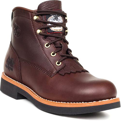 Heel Height: Approx. 6'' Tall. Georgia Savannah 6" Lacer Boot. Cushioned Insole. Goodyear welt construction. Solid stud hooks & eyelets set on steel washers. Polyurethane Lightweight Outsole.