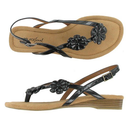 The Roddy thong sandals from Natural Sole by Naturalizer features a smooth and synthetic upper with floral accents on the strap, slightly squared toe, stitching accents, adjustable strap with buckle closure, smooth lining, synthetic out sole and an approx